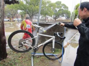 あいにくの雨模様ですが、早朝より出場選手が続々