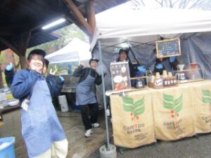 飲食ブースでは、カフェコーナー、豚汁や焼き芋も